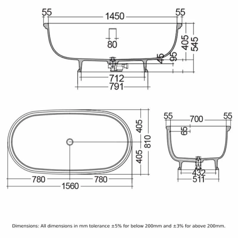 RAK Washington Freestanding Bath 1560 x 810mm – Cappuccino – WTBT15681514 Details